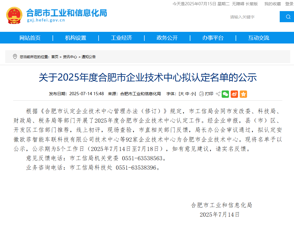 近日,依據(jù)《合肥市認(rèn)定企業(yè)技術(shù)中心管理辦法(修訂)》相關(guān)規(guī)定,合肥市工業(yè)和信息化局聯(lián)合市發(fā)展和改革委員會(huì)、科學(xué)技術(shù)局、財(cái)政局、稅務(wù)局等部門組織開展了 2025